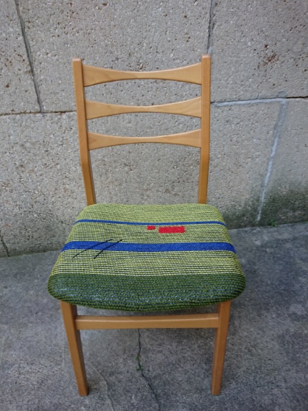 Mein Highlight: ein Stuhl aus eben dieser Werkstatt, aufpoliert und neu gepolstert mit einem selbst am Handwebstuhl gewebten Polsterstoff.